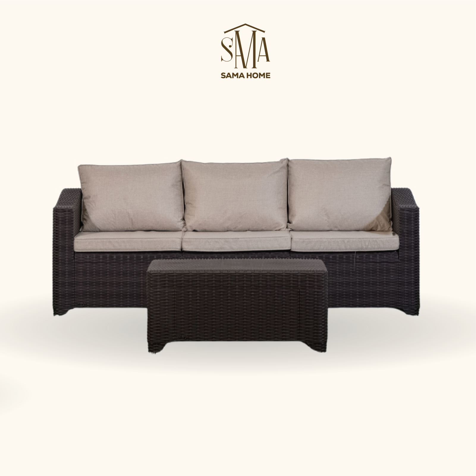 Make your patio the go-to gathering spot with the Grand2 5-Seater Lounge Set. This all-in-one ensemble includes a generous three-seat sofa, two matching armchairs and a coordinating coffee table—each wrapped in rich espresso-brown resin wicker and topped with plush, quick-dry taupe cushions. Perfect for family brunches, evening cocktails or just kicking back with friends.