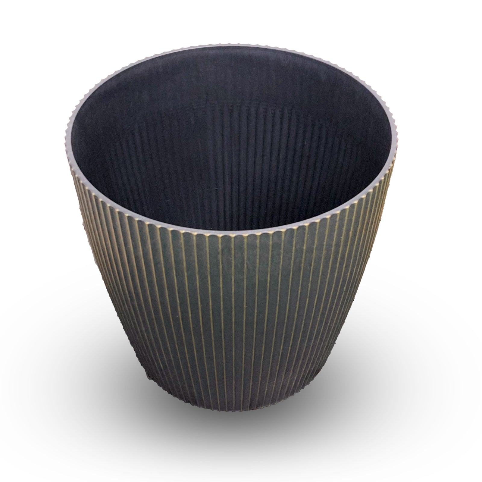 Elevate your space with the Sama Home Luxe Black & Gold 12" Planter, a striking fusion of modern elegance and timeless texture. Crafted with deep vertical grooves and a matte black finish accented by subtle gold lines, this planter adds a refined touch to any indoor or outdoor setting.